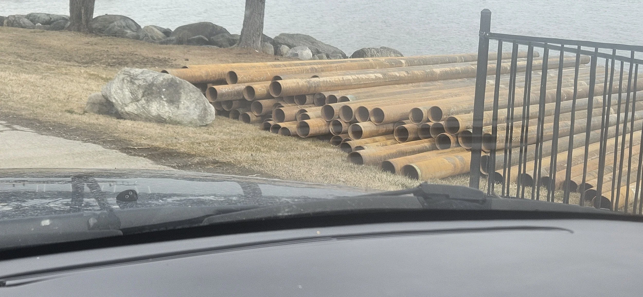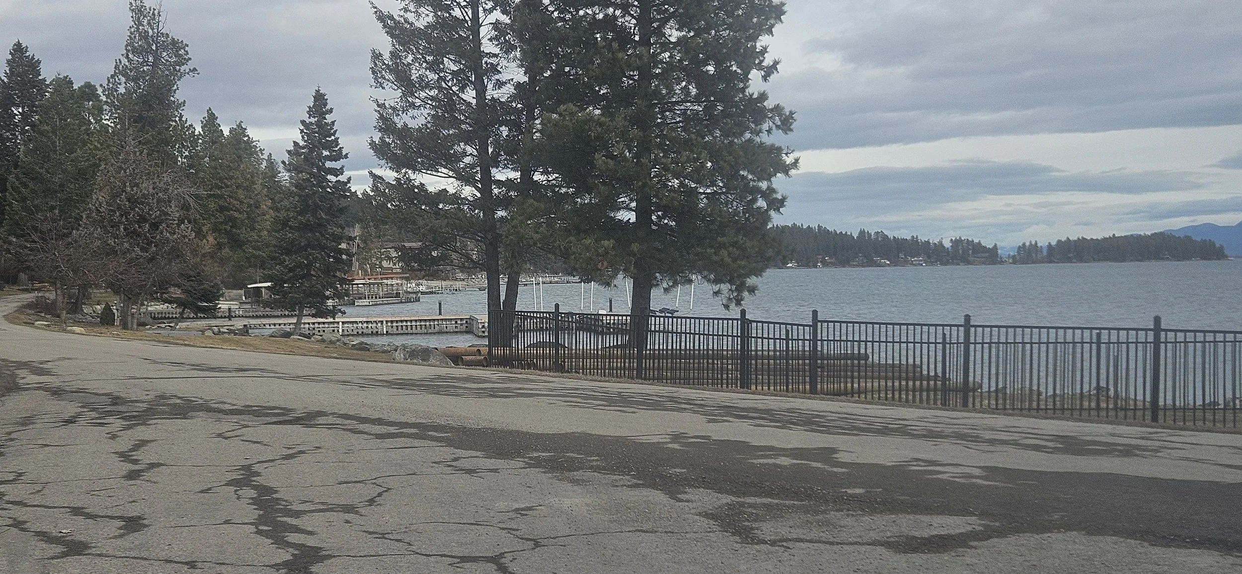 These photos were taken by a Flathead Lakers Board Member on the morning of February 2, 2026 at the proposed marina site at 688 Lakeshore Blvd. Lakeshore, MT. It clearly shows materials needed to construct the docks and piers of the proposed marina being stockpiled in the Lakeshore Protection zone before the variance request hearing for the project has even taken place on February 3, 2026.